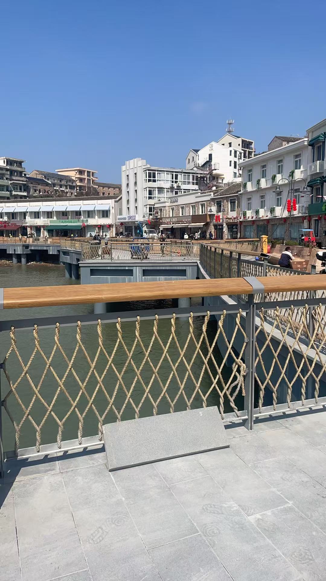 La sección central está interconectada con cuerdas de cáñamo natural, lo que no sólo proporciona funciones protectoras básicas sino que también mejora significativamente la jerarquía visual general, haciendo que la barandilla sea más armoniosa con el paisaje natural de la isla y creando un ambiente costero relajado y natural.