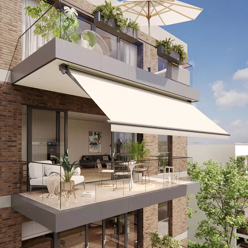 Vionta sólo utiliza materiales de alta calidad para garantizar una funcionalidad óptima. Todas las extrusiones metálicas están hechas de acero de alta calidad, lo que proporciona durabilidad adicional. Todos los cañones y brazos de las armas se miden cuidadosamente para adaptarse perfectamente al espacio disponible. Podrá dormir tranquilo porque nuestro toldo Open Cassette puede incluso soportar diversas condiciones climáticas impredecibles. Vionta garantiza que nuestro parasol es impermeable, resistente a los rayos UV y a las manchas. Vionta también se da cuenta de que sus necesidades pueden cambiar todos los días dependiendo del clima. ¡Pero no hay necesidad de preocuparse! Con nuestro Toldo Open Cassette, ya sea de accionamiento eléctrico o manual, podrás desplegarlo completamente o ampliarlo en la medida que consideres oportuno. ¡La elección es tuya!